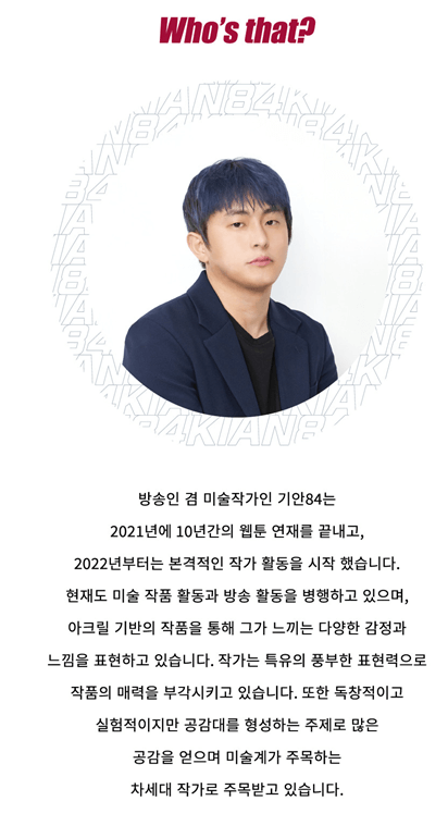 ✳️기안 84 전시회 입장료는 미취학 아동은 무료이며, 초, 중, 고 대학생 일반인은 모두 8400원입니다.