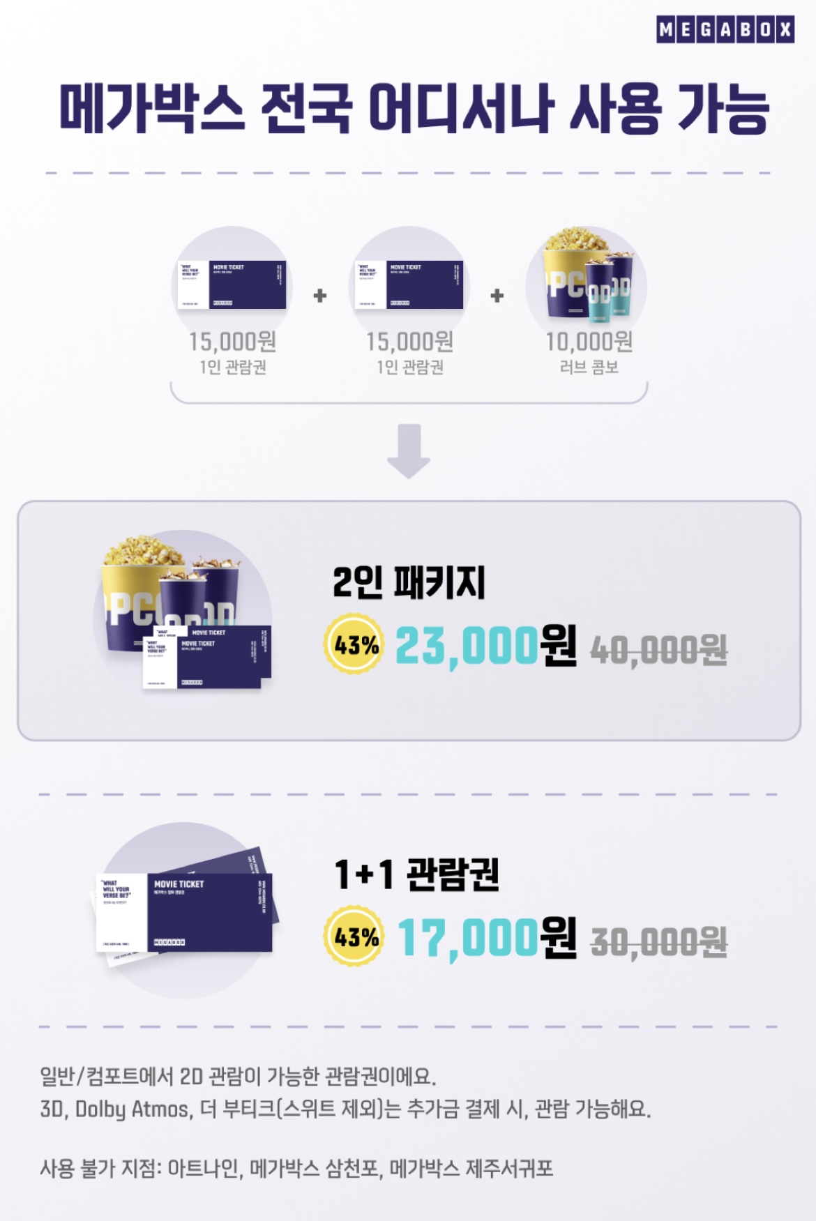 데이트팝에서 메가박스 1+1을 클릭하셔서 2인패키지 또는 1+1 관람권을 구매하시면 됩니다.