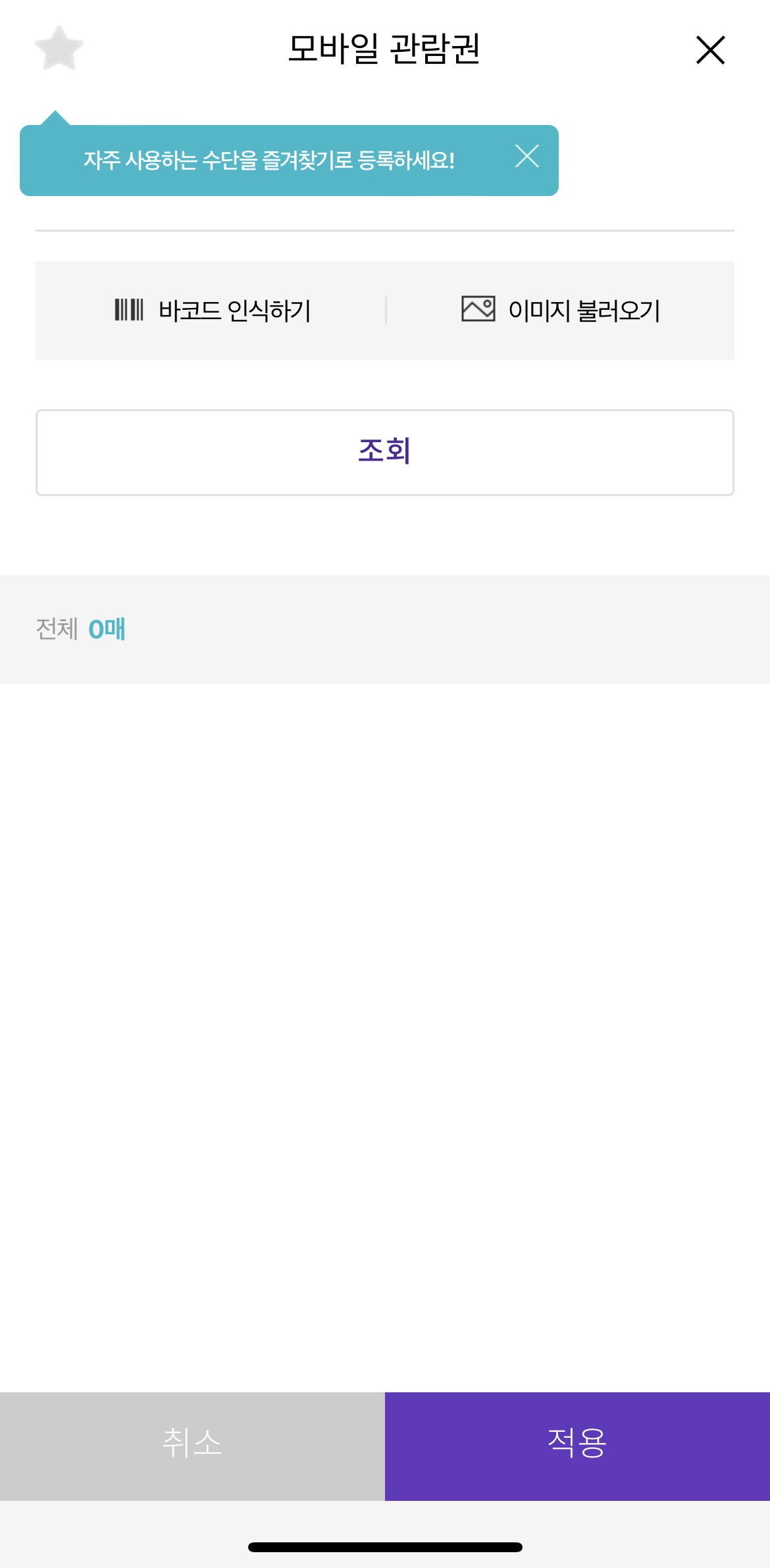 관람하시는 영화를 선택하시고 마지막 결제창에서 모바일 관람권을 클릭하시면 등록된 영화관람권을 조회하시면 됩니다.
