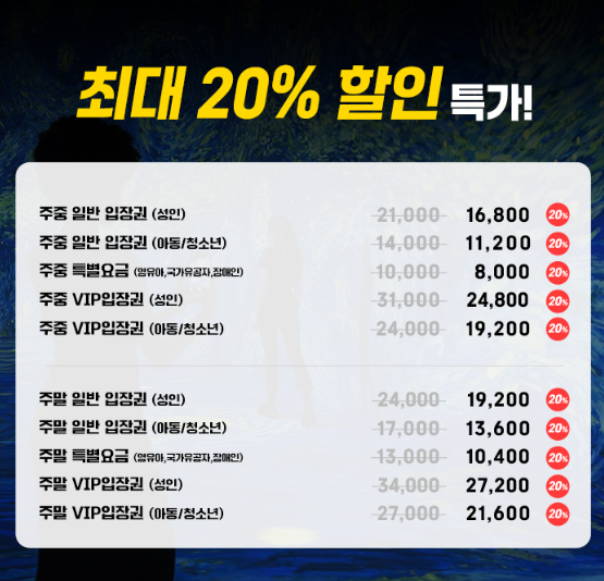 ✅전시회 가격 : 일반권(어른기준) 16,800원(할인 중) / VIP(어른기준) 24,000원(할인 중)