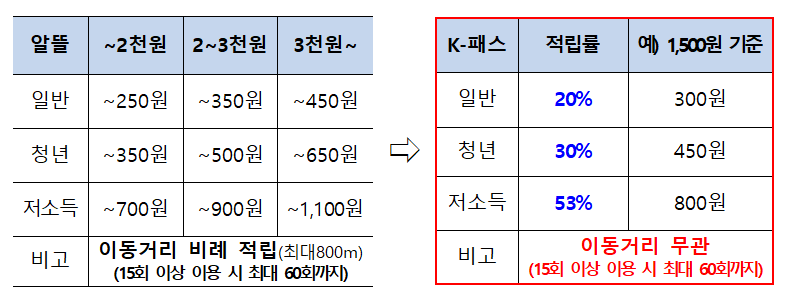 k-패스로 대중교통비 최대 53% 환급…